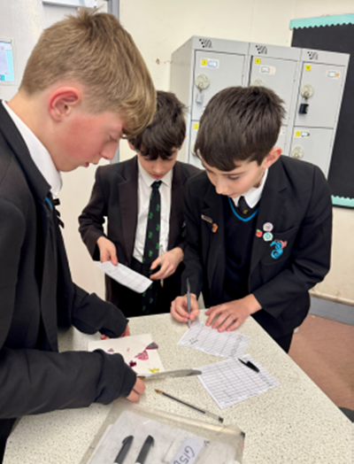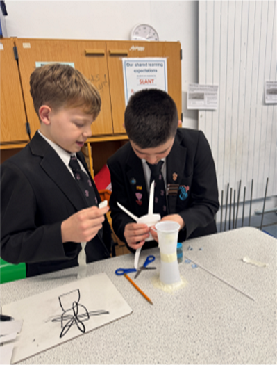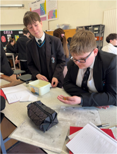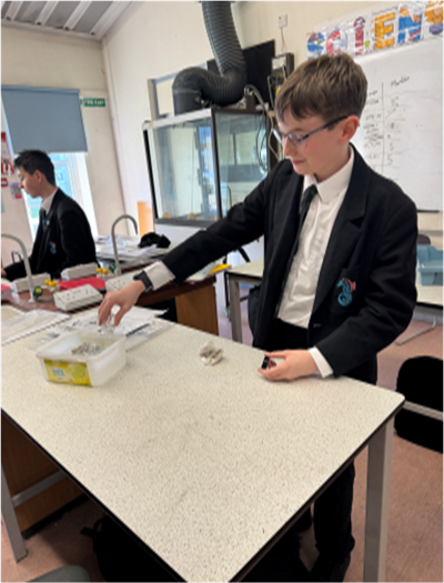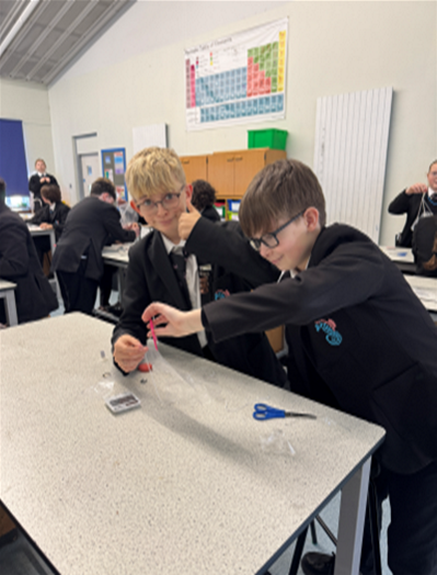 Our Year 7 students explored four exciting challenges. They designed wind turbines to test which blades spin the fastest, investigated parachute shapes to see which falls the slowest, built water filters to explore how clean drinking water could be produced for space missions, and carried out a crime scene investigation to identify unknown substances using forensic techniques.