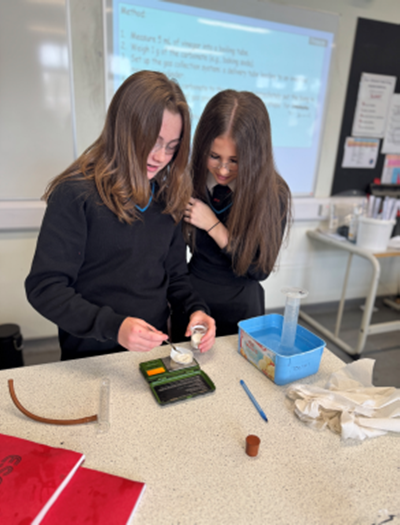 Year 9 students investigated floating and boat design, tested which substances produce the most gas when reacting with vinegar, and explored how astronaut foods compare nutritionally with fresh foods by testing samples for sugar and vitamin C.