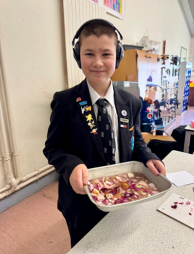 Year 8 students explored how fossils form and created their own trace fossils, investigated how natural dyes can be made from plants such as spinach and red cabbage, examined the science behind why onions make us cry, and tested how geometry strengthens structures by building paper bridges to see which design could hold the most weight.